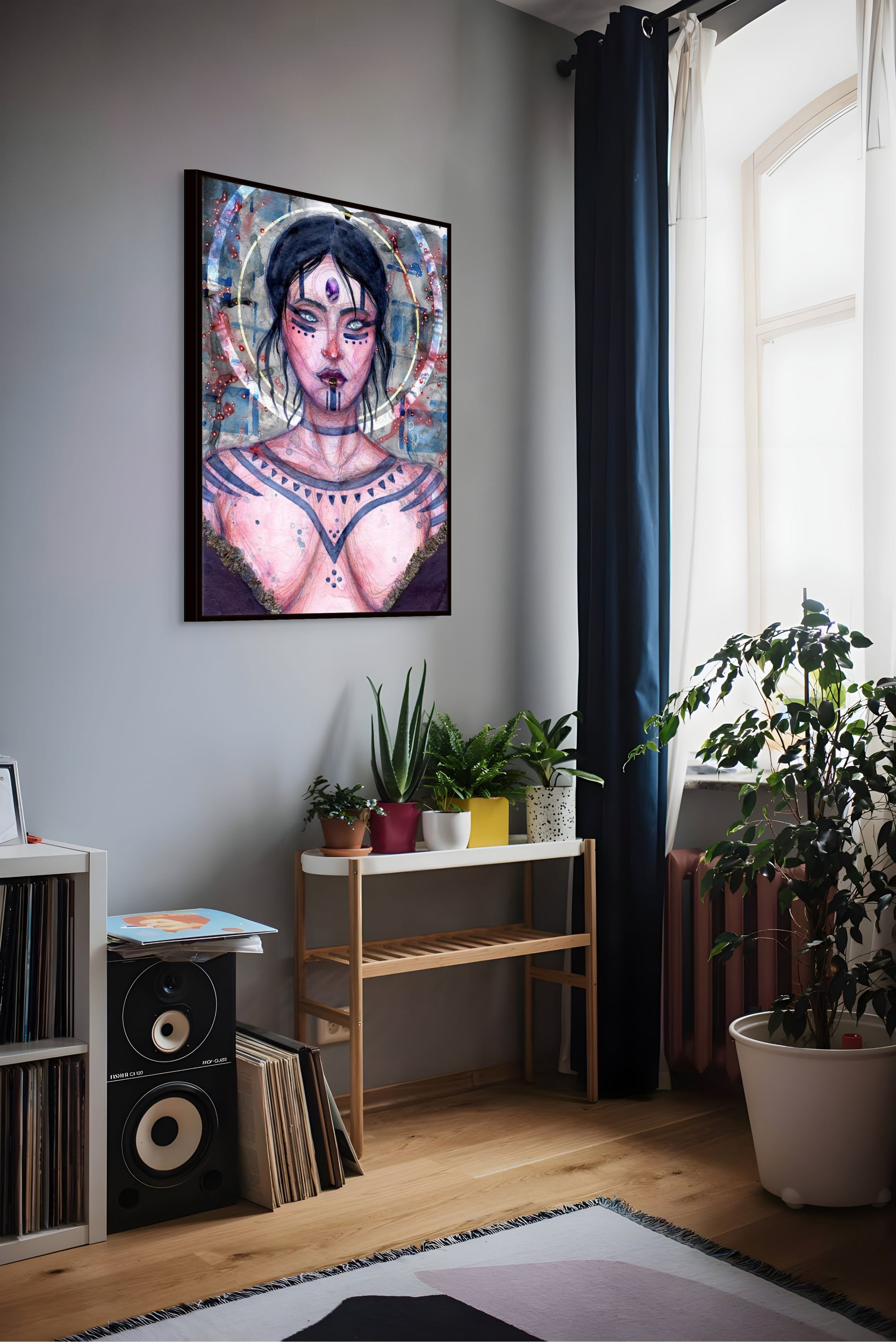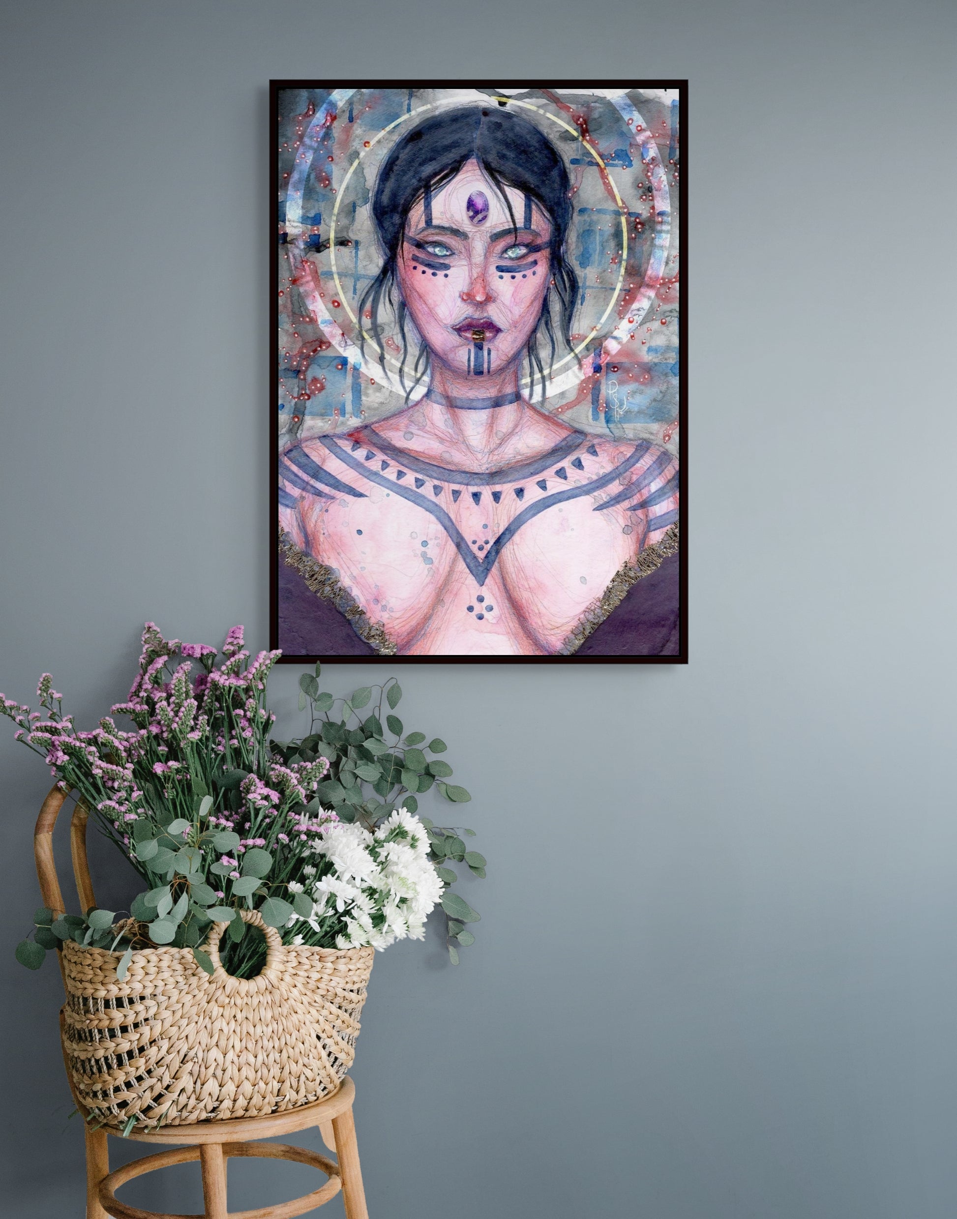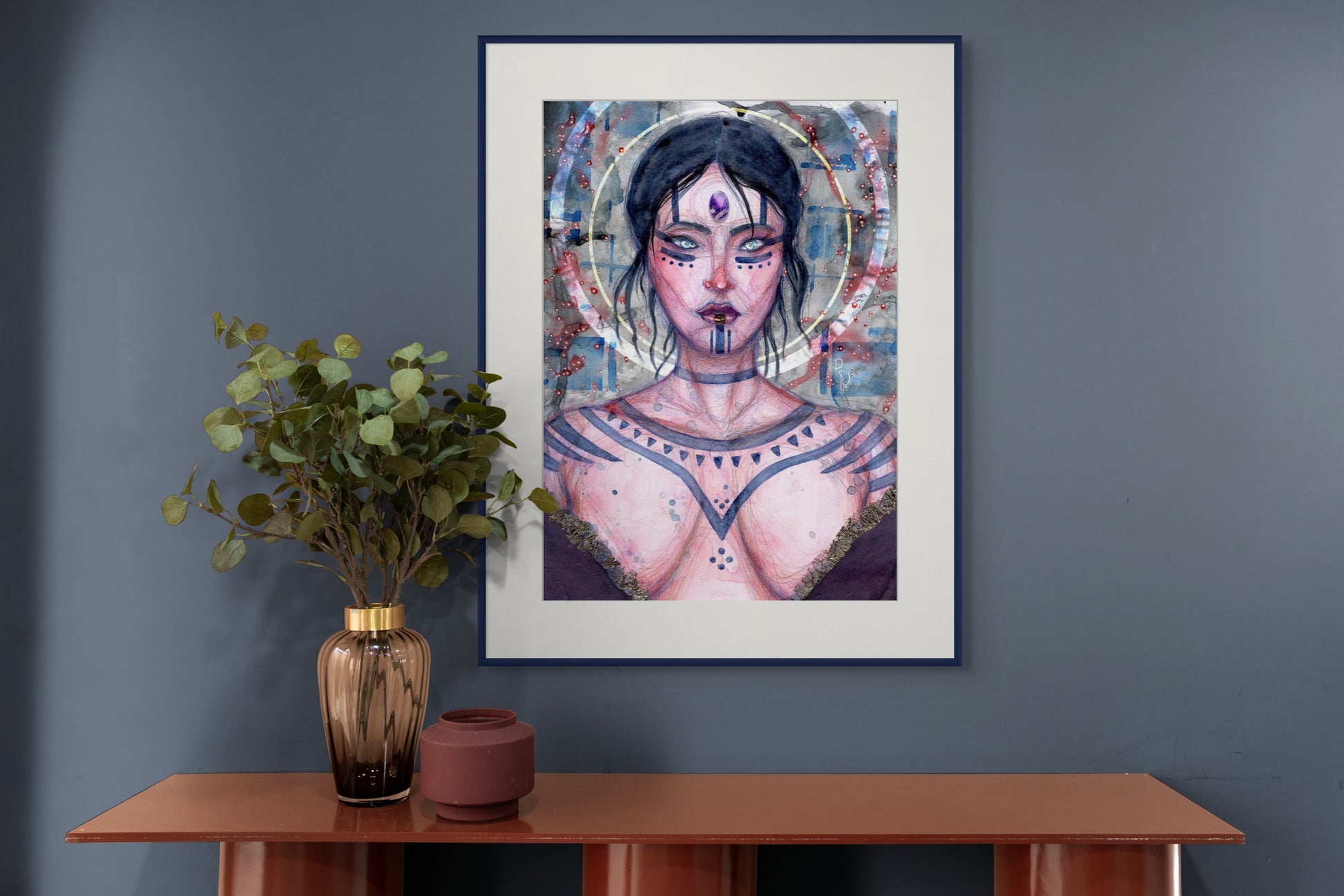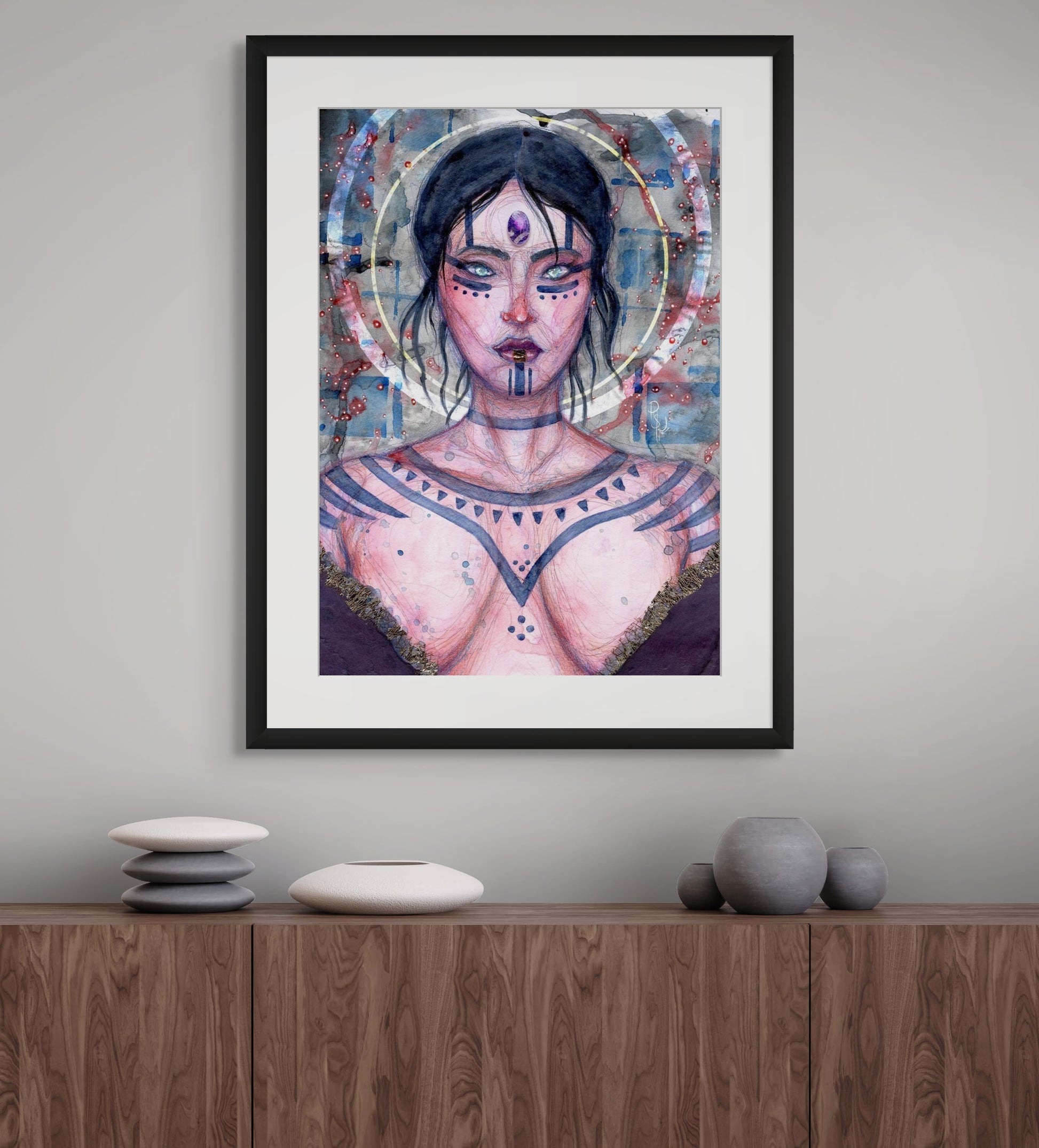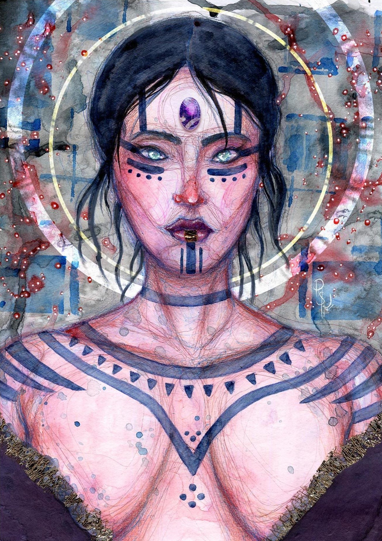 - Son joyau nébuleux relie son esprit à la conscience suprême, tandis que ses tatouages sont les runes des anciens gardiens. Son regard cristallin veille.