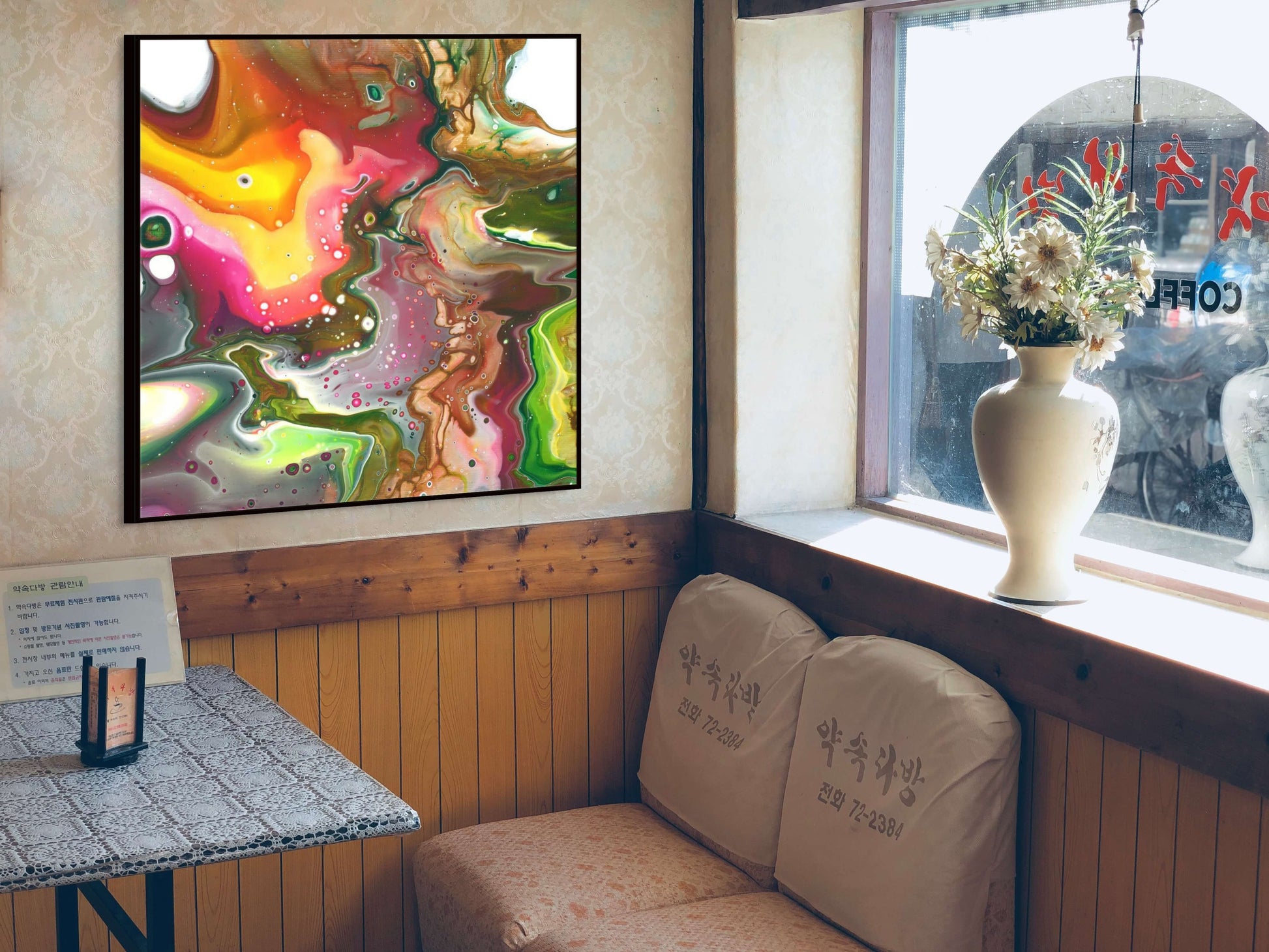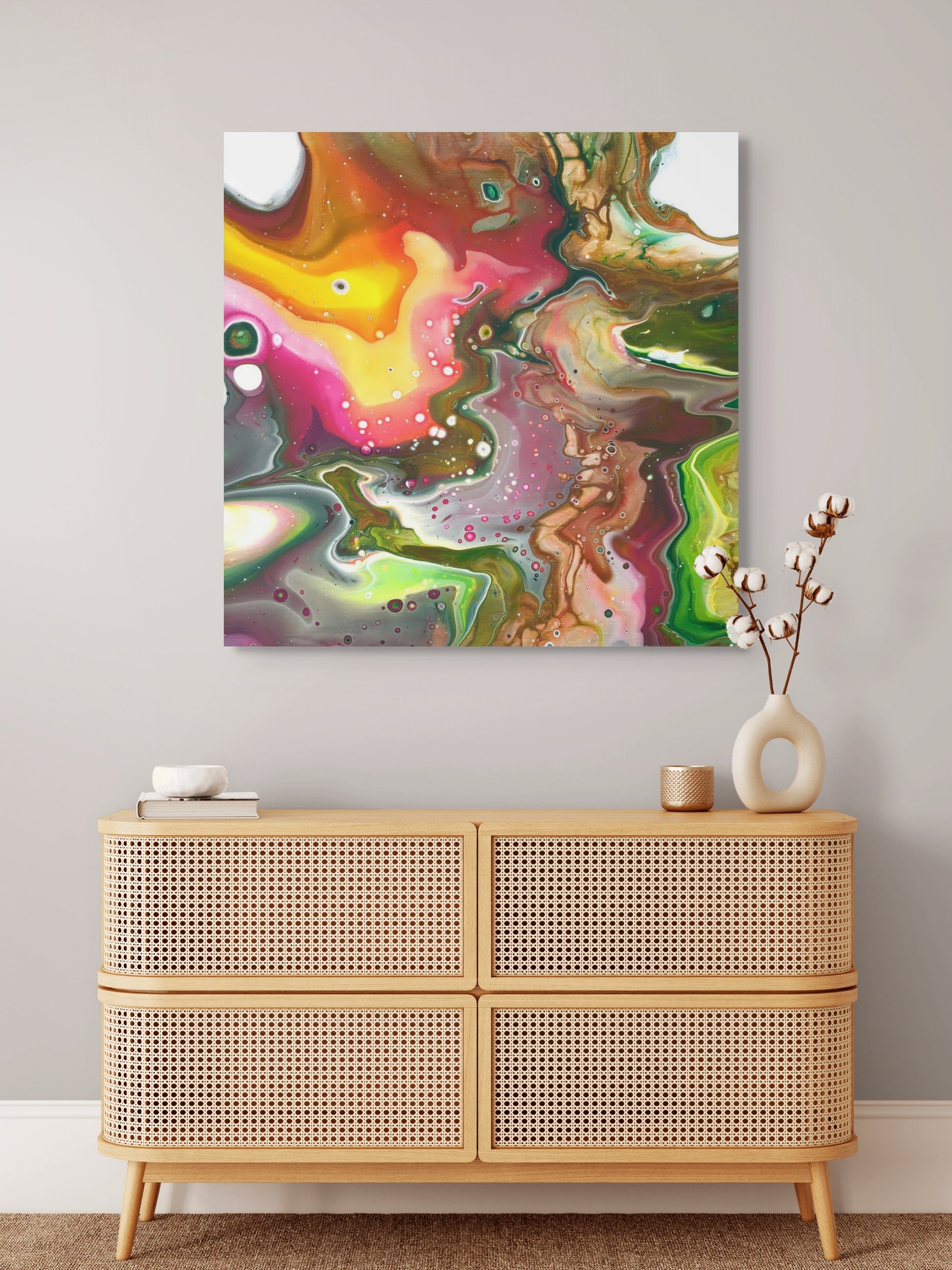 Telle un kaléidoscope, Psychédélice est une explosion de formes et de couleurs, vouée à une projection inconsciente de son état intérieur : radieuse à contempler.