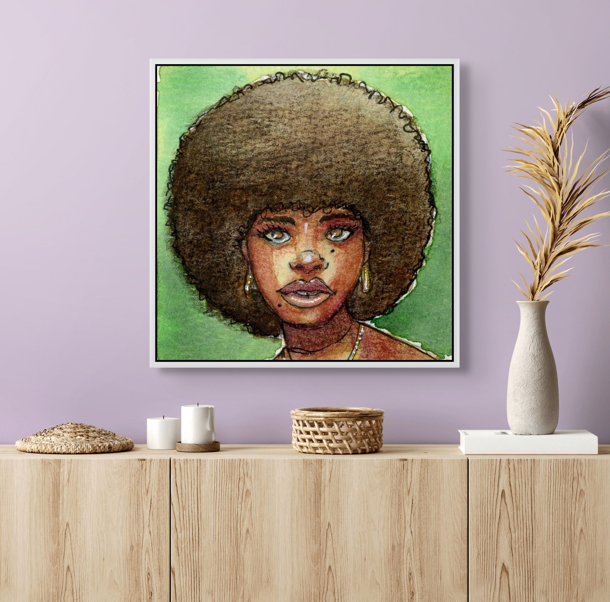 Ce portrait est issu de la série Présences, un ensemble de 35 visages féminins peints à l’aquarelle dans un petit carnet de croquis, au fil d’un exercice quotidien : choisir au hasard une photographie de femme, puis en extraire une présence à travers l'aquarelle et les crayons de couleurs, sans intention préalable.